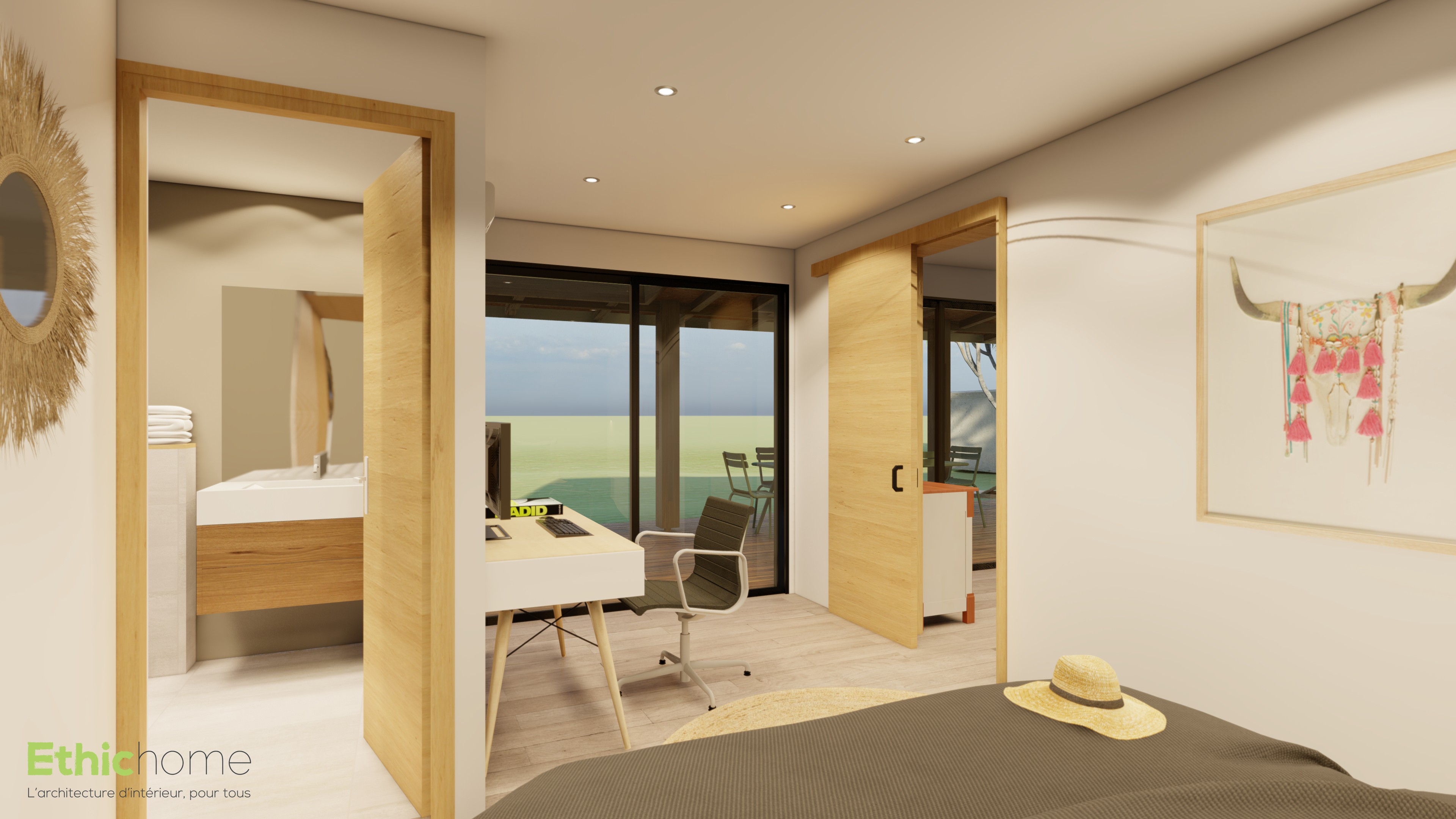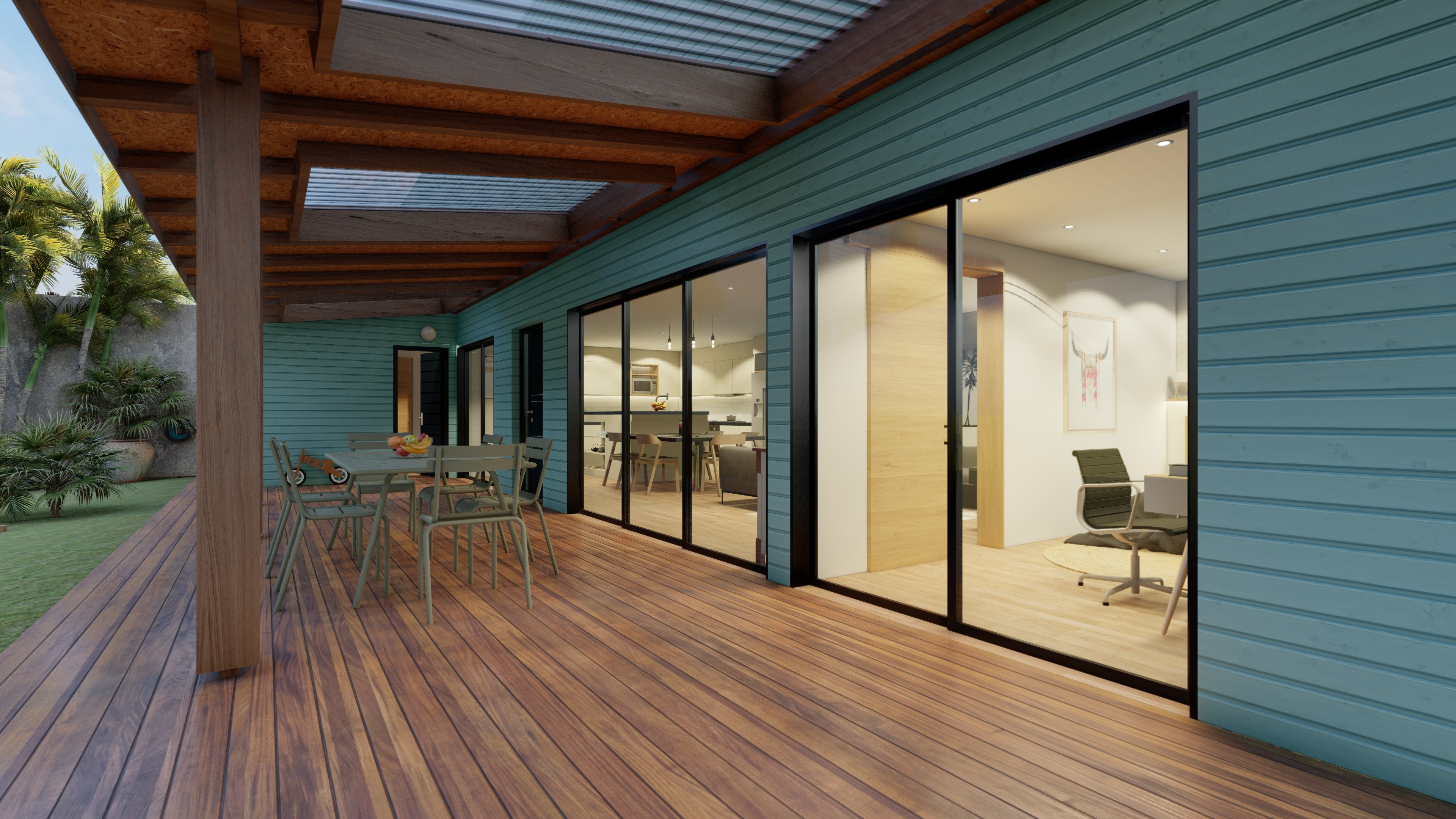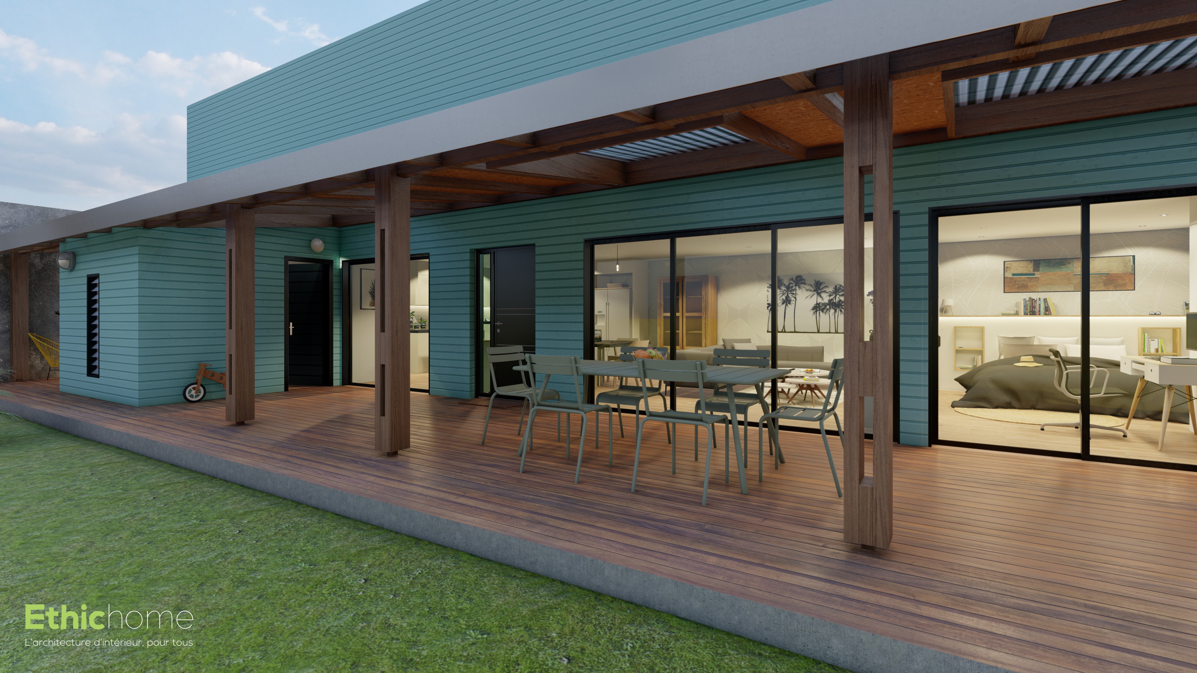 En collaboration avec ETHIC-HOME, le projet a pour objectif la réalisation d'une extension / varangue au RDJ de la bâtisse actuelle. Cette extension en dur est reliée à la bâtisse principale arborant le même style architectural. Il s'agit de créer un espace varangue avec terrasse en bois intégrant un local de rangement.