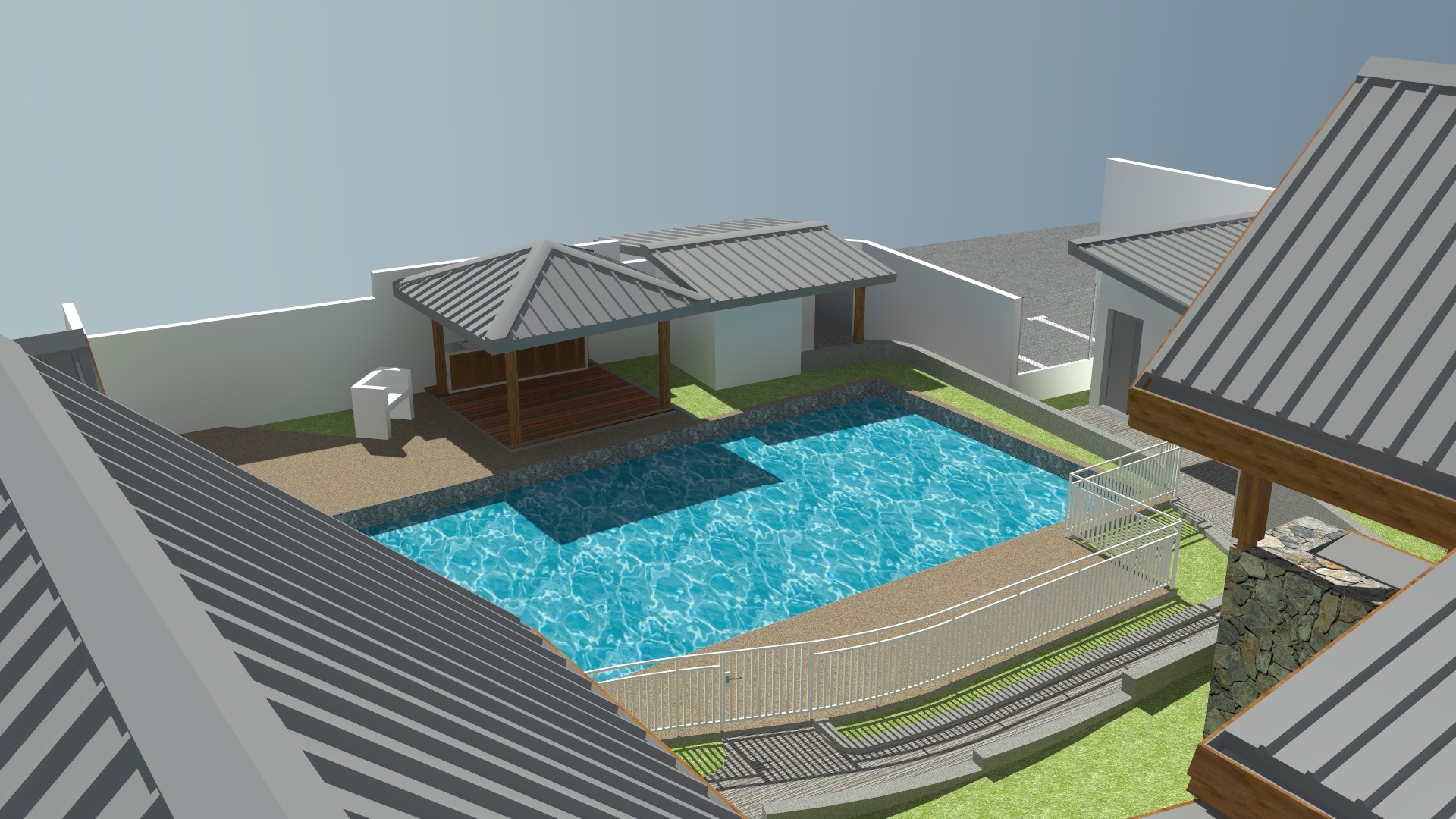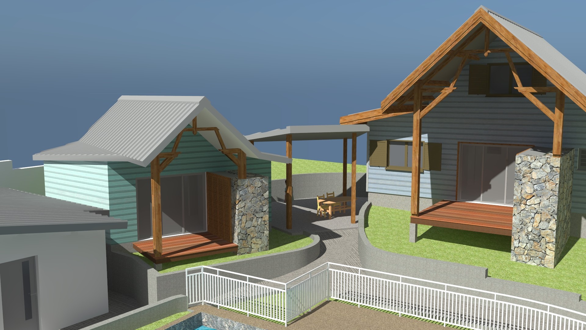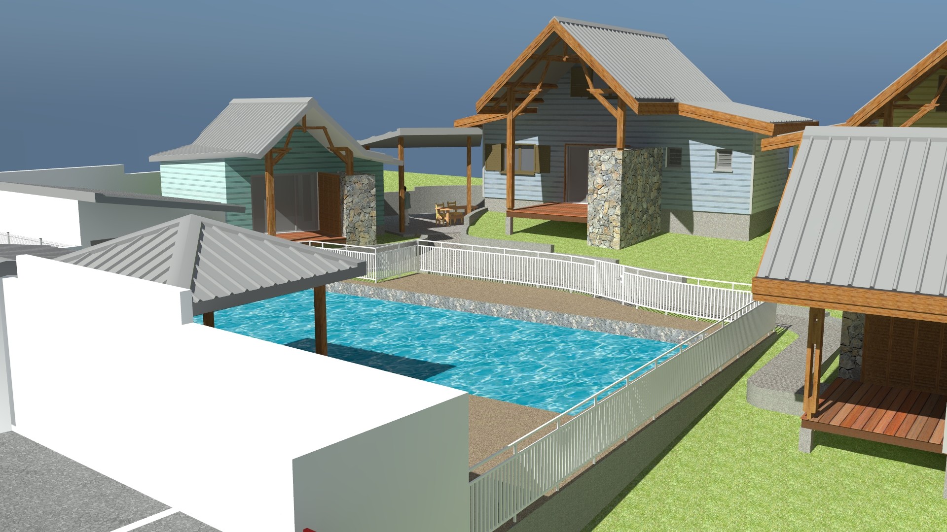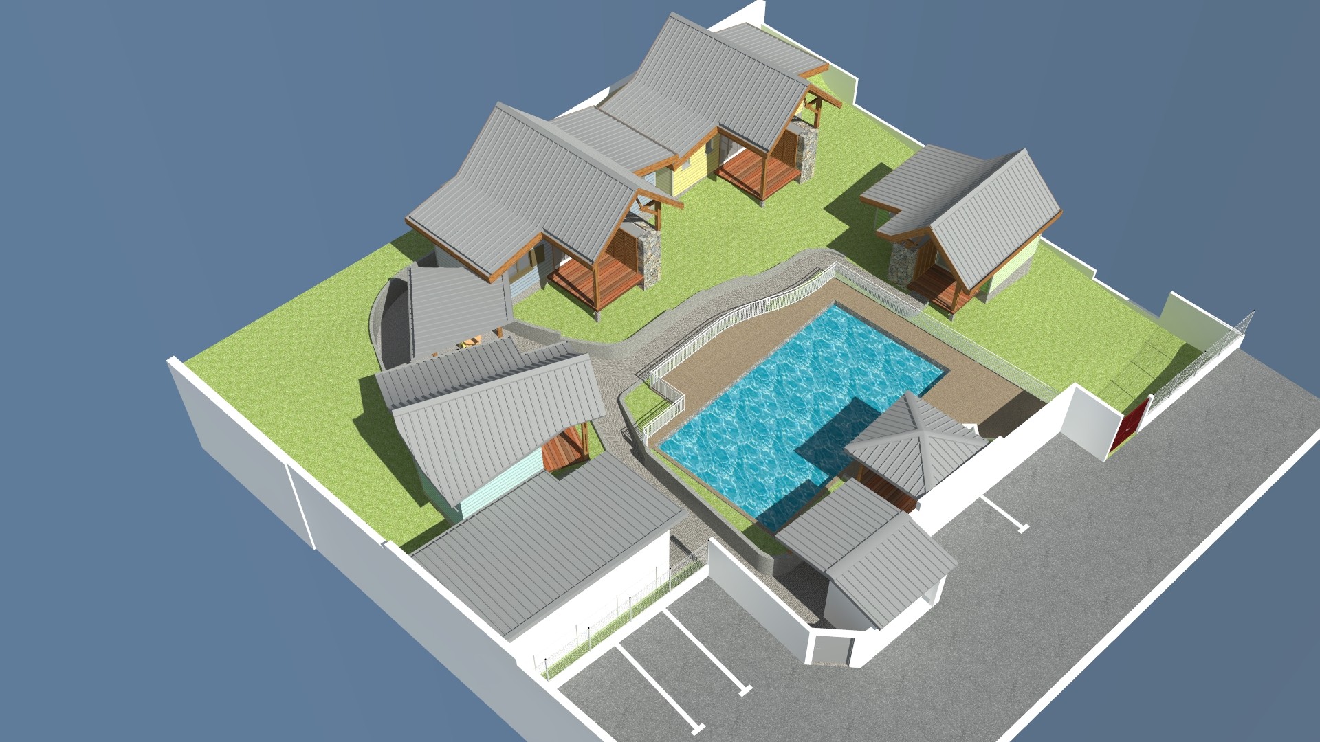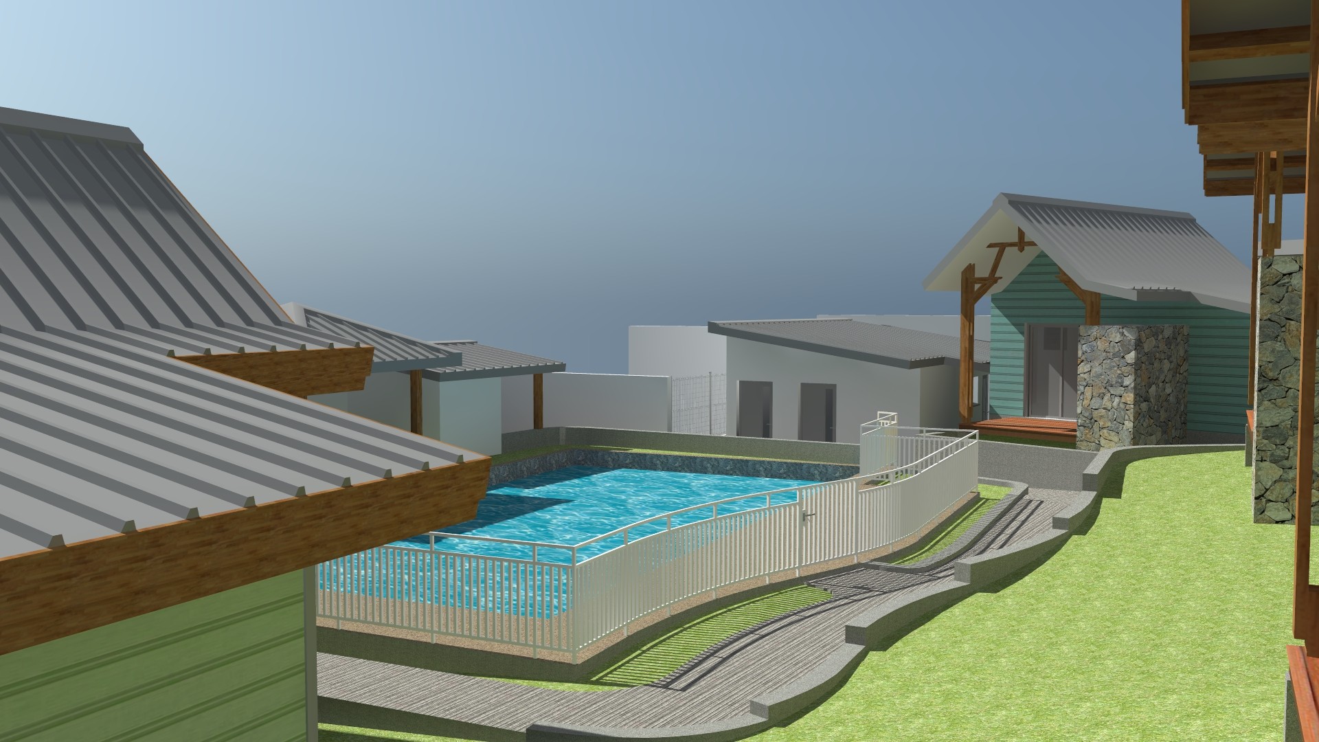 Afin de conserver la discrétion du lieu, la clôture avec la rue est réalisée en mur de 2m de haut. Chacun gîte possède une varangue, avec kitchenette et vue sur les espaces extérieurs et piscine. Les quatre gîtes possèdent une ventilation naturelle
