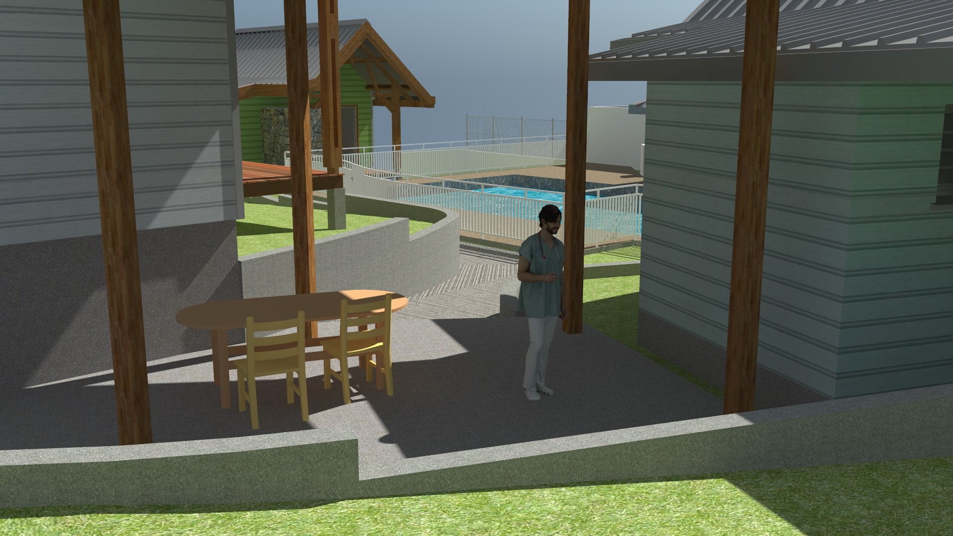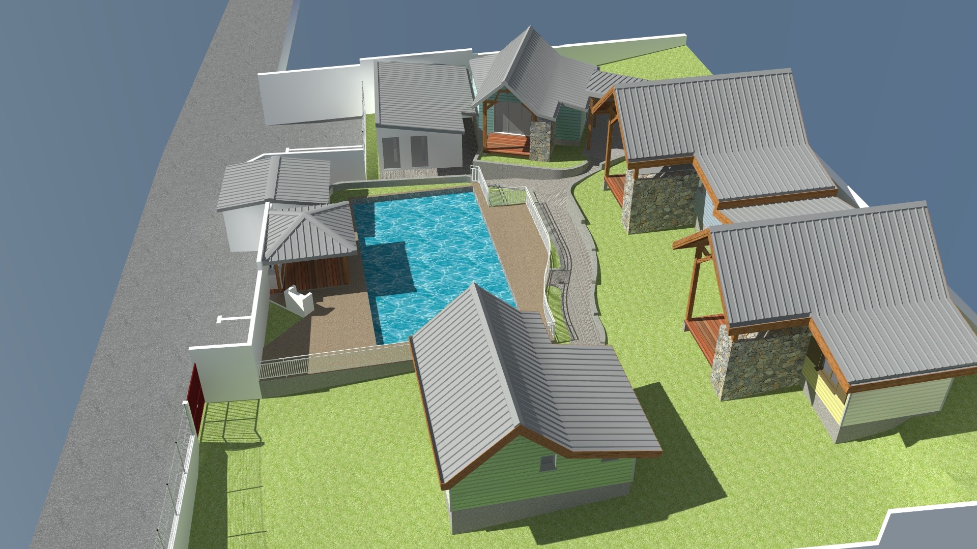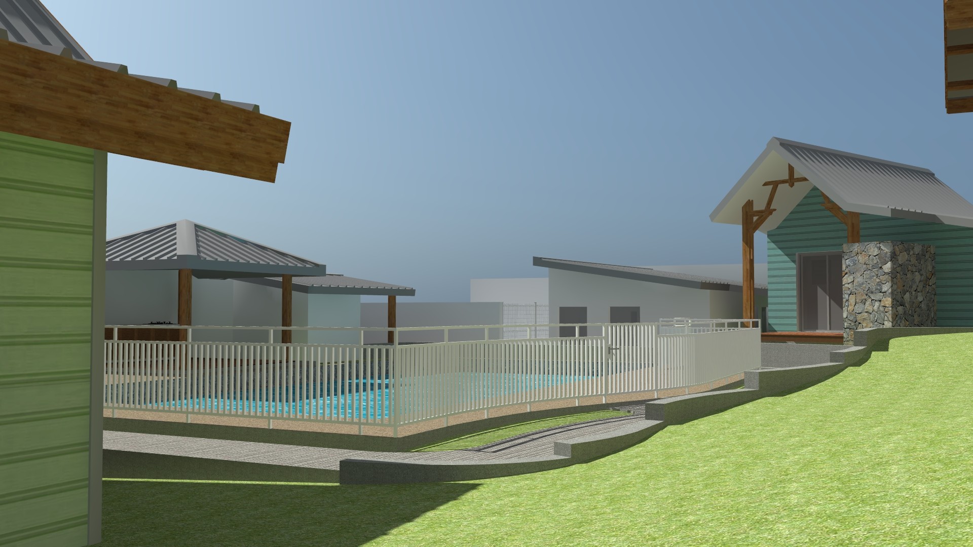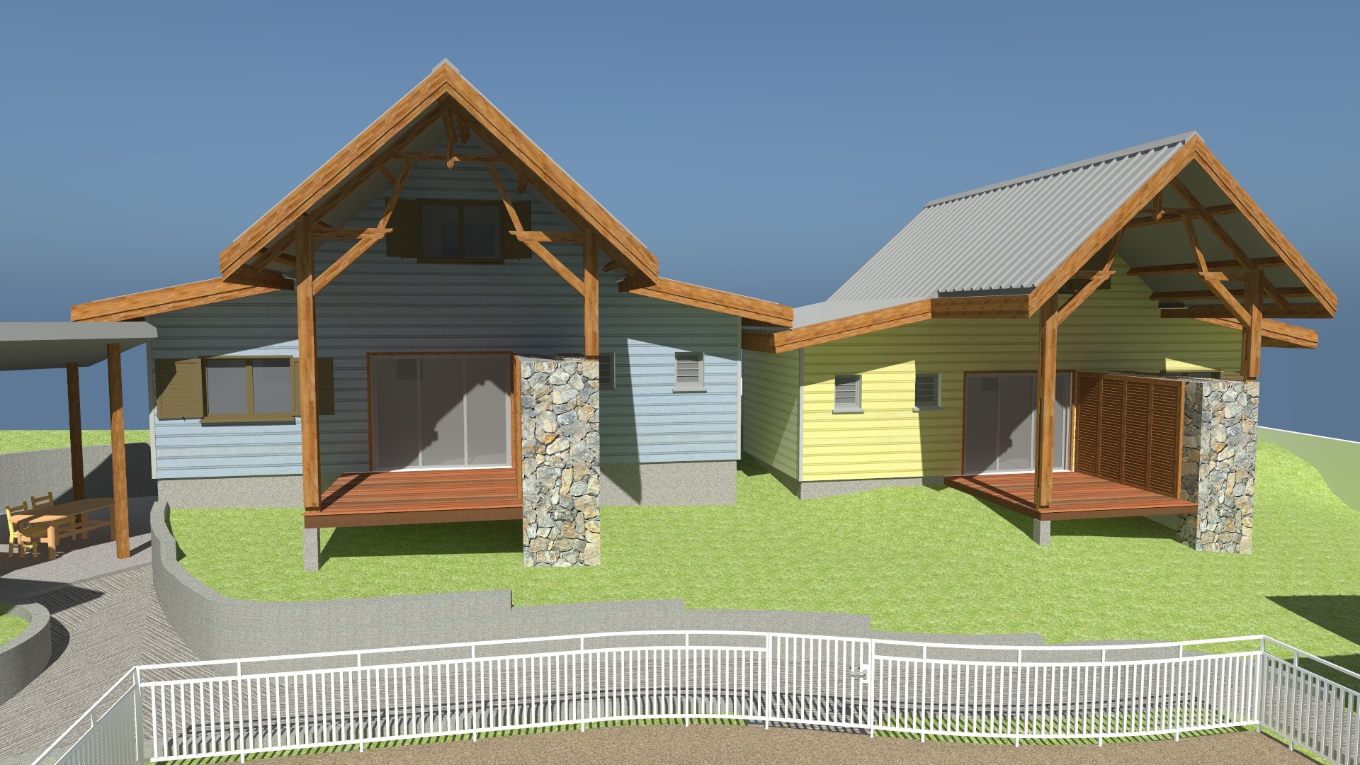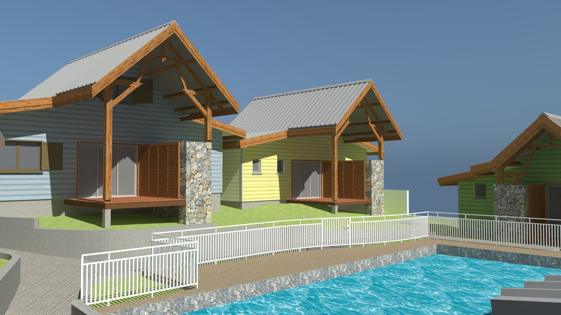 Afin de conserver la discrétion du lieu, la clôture avec la rue est réalisée en mur de 2m de haut. Chacun gîte possède une varangue, avec kitchenette et vue sur les espaces extérieurs et piscine. Les quatre gîtes possèdent une ventilation naturelle