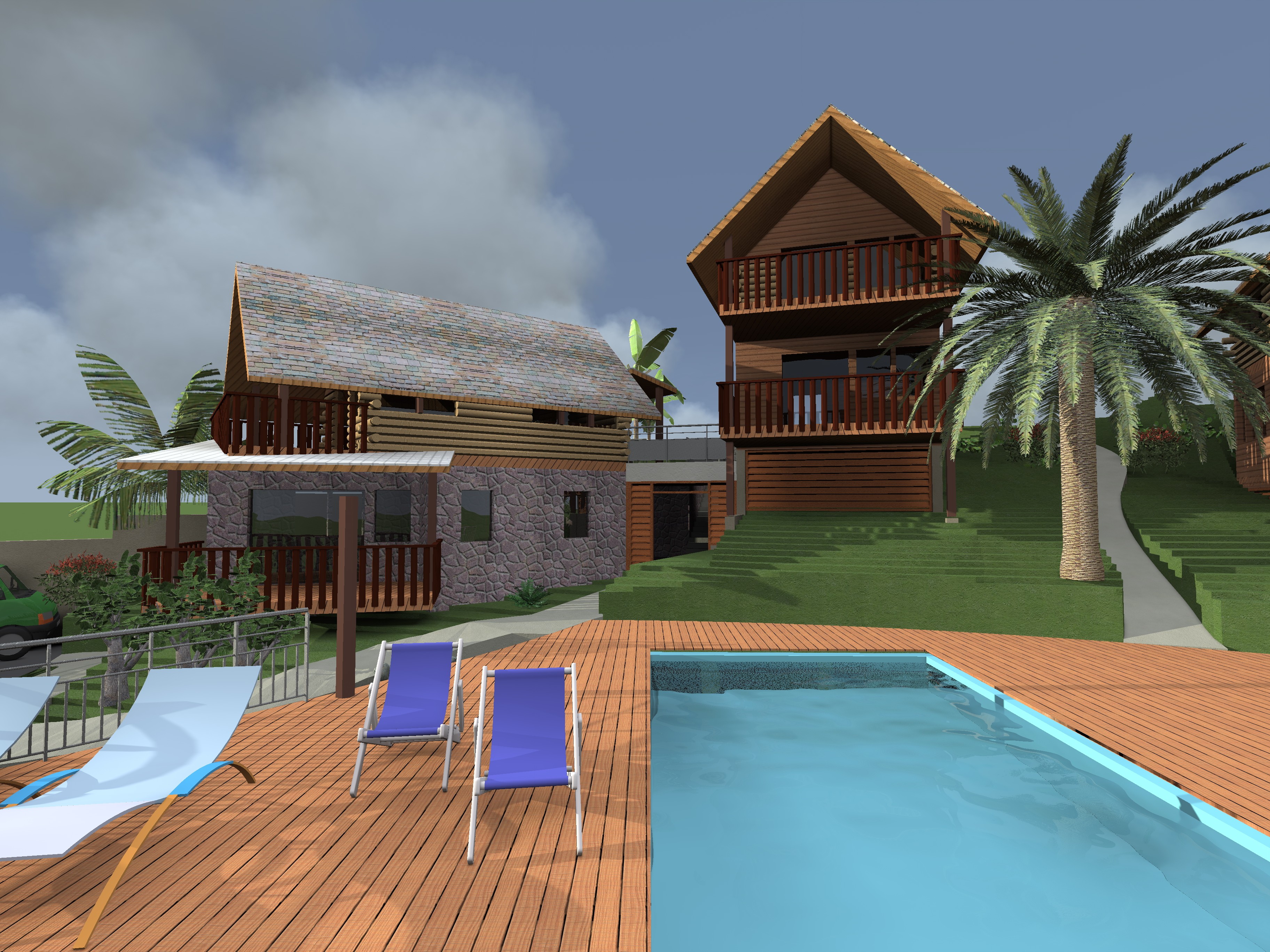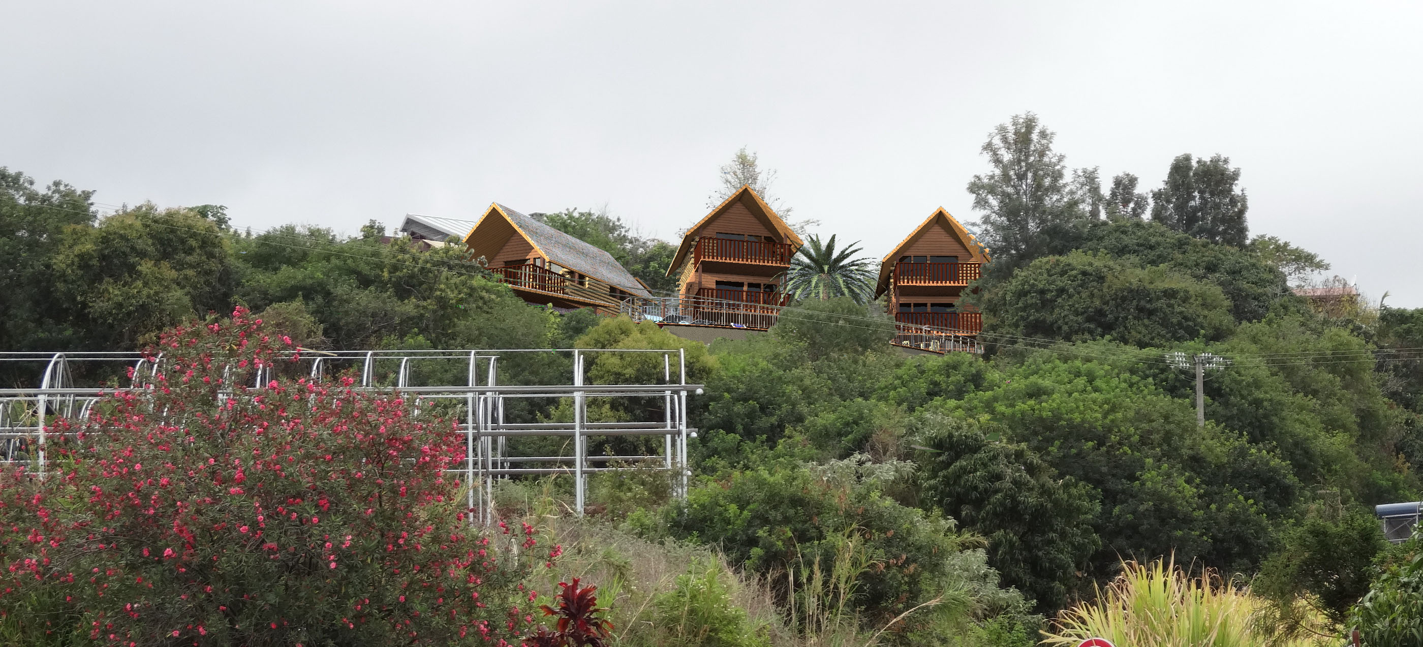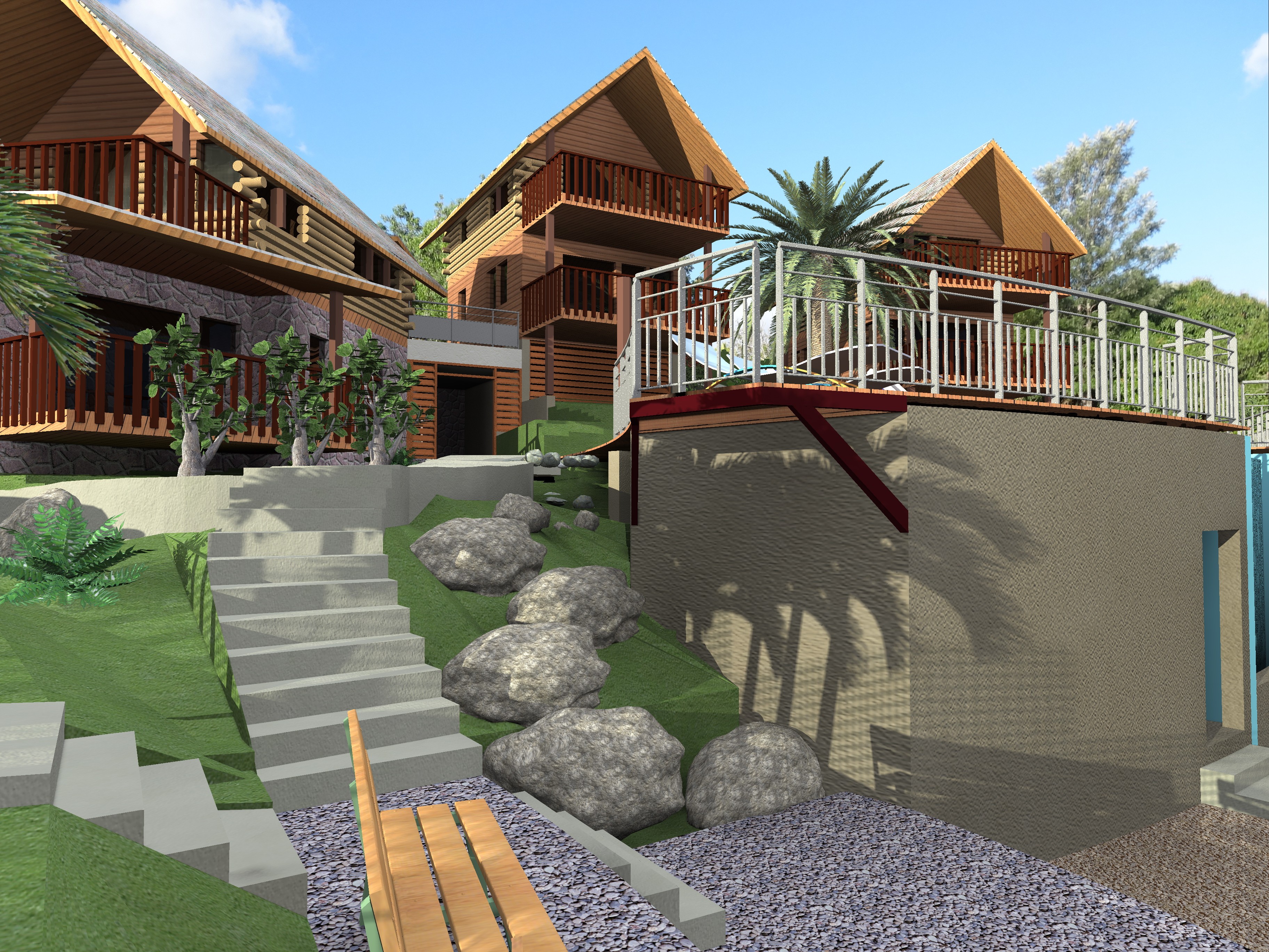 Les bâtiments sont prévus avec 2 studios chacun, et espacés de façon judicieuse. Des aménagements spécifiques ont été mis en œuvre pour garantir l’accessibilité aux personnes en situation de handicap, malgré la forte déclivité.