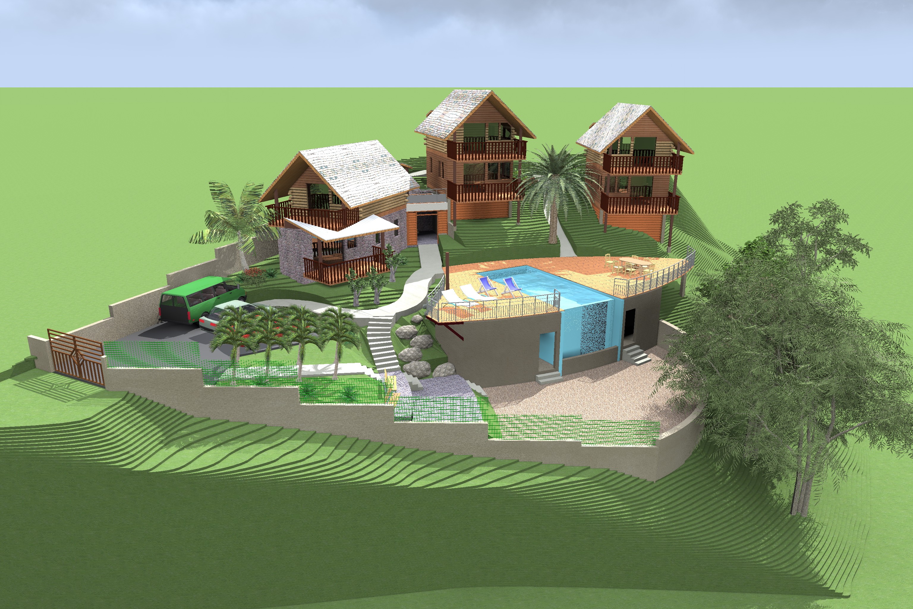 parking, Piscine, kiosque, boulodrome complètent le projet