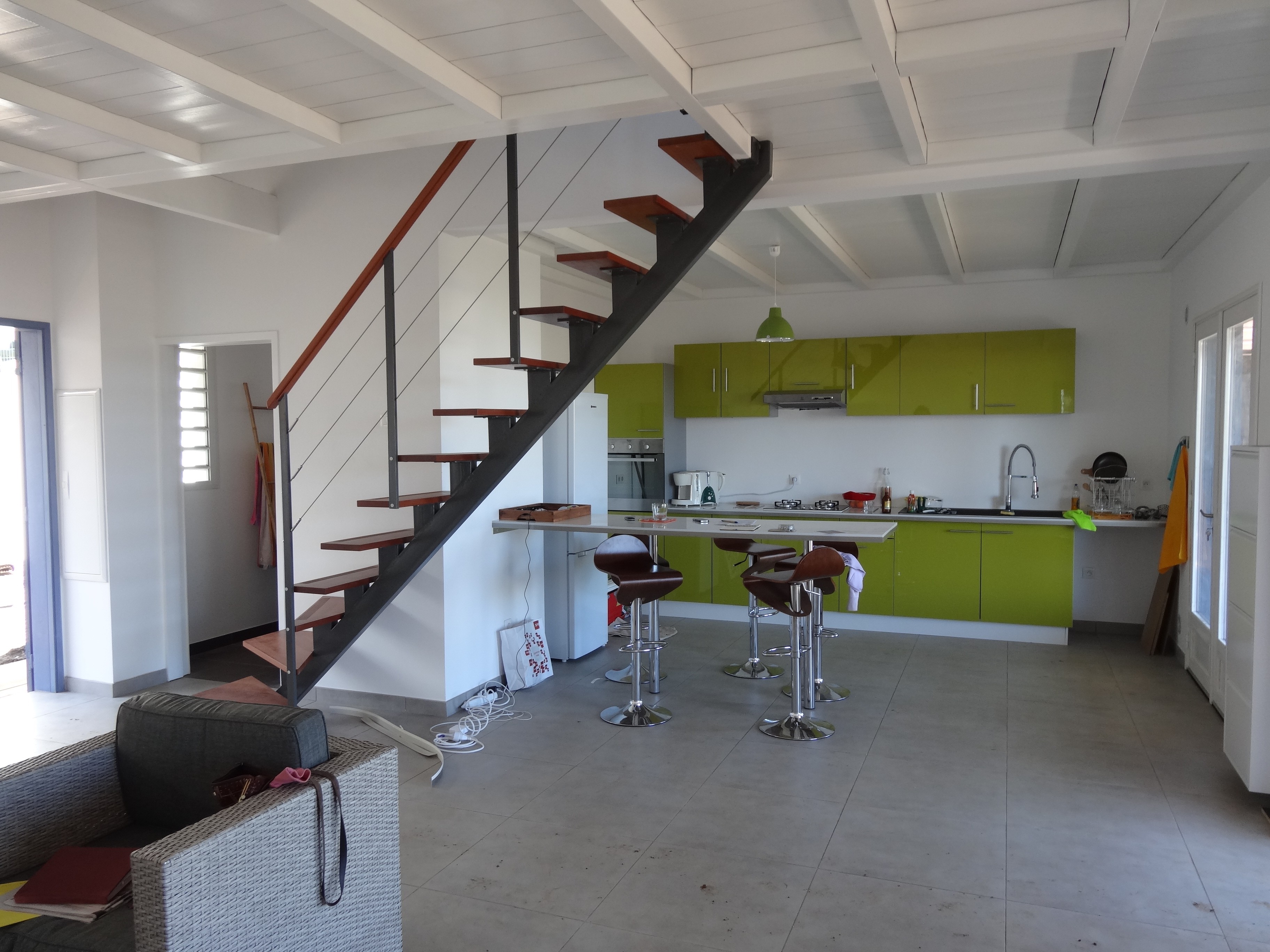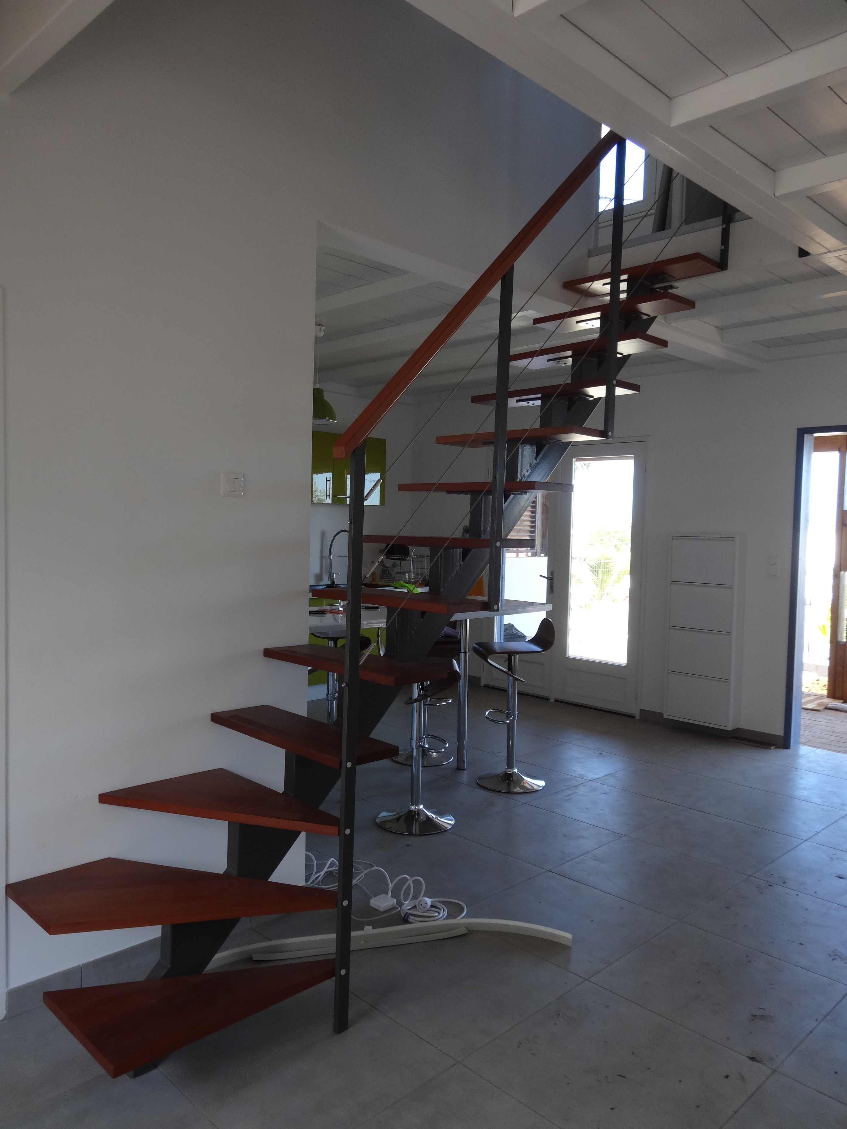 Le terrain, à la fois en pente et très allongé, avec à peine 9m de large, a imposé des choix d’implantation précis afin d’optimiser l’espace, la circulation et l’adaptation au relief naturel.