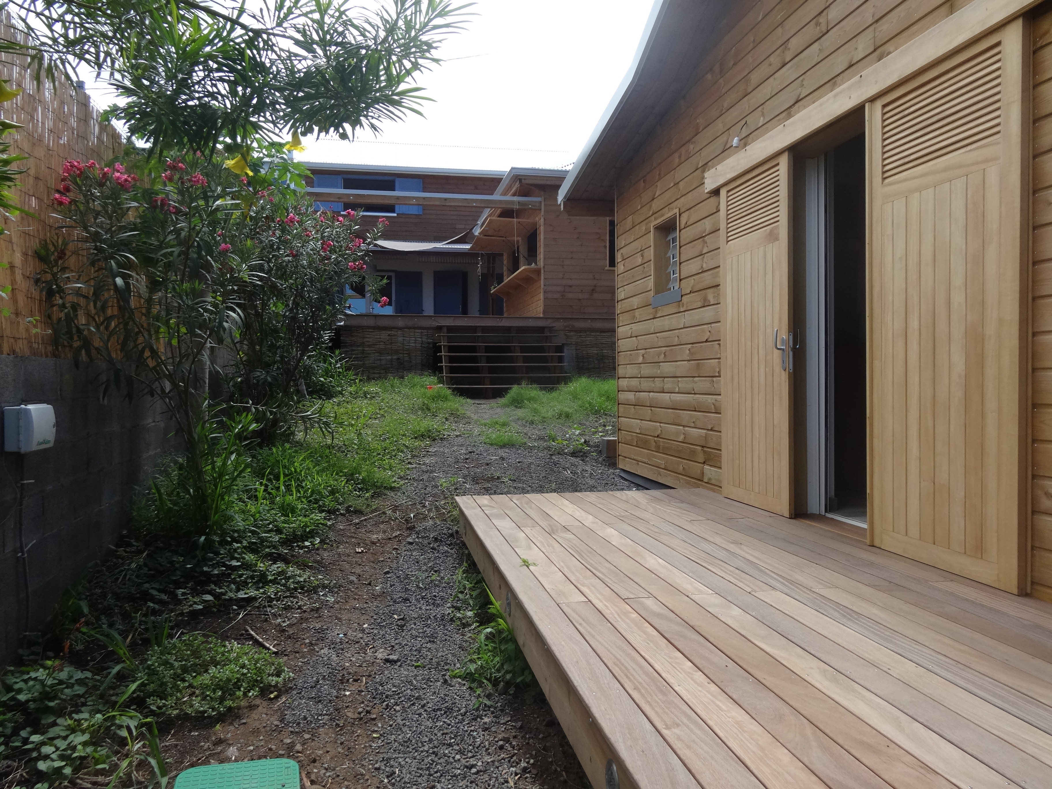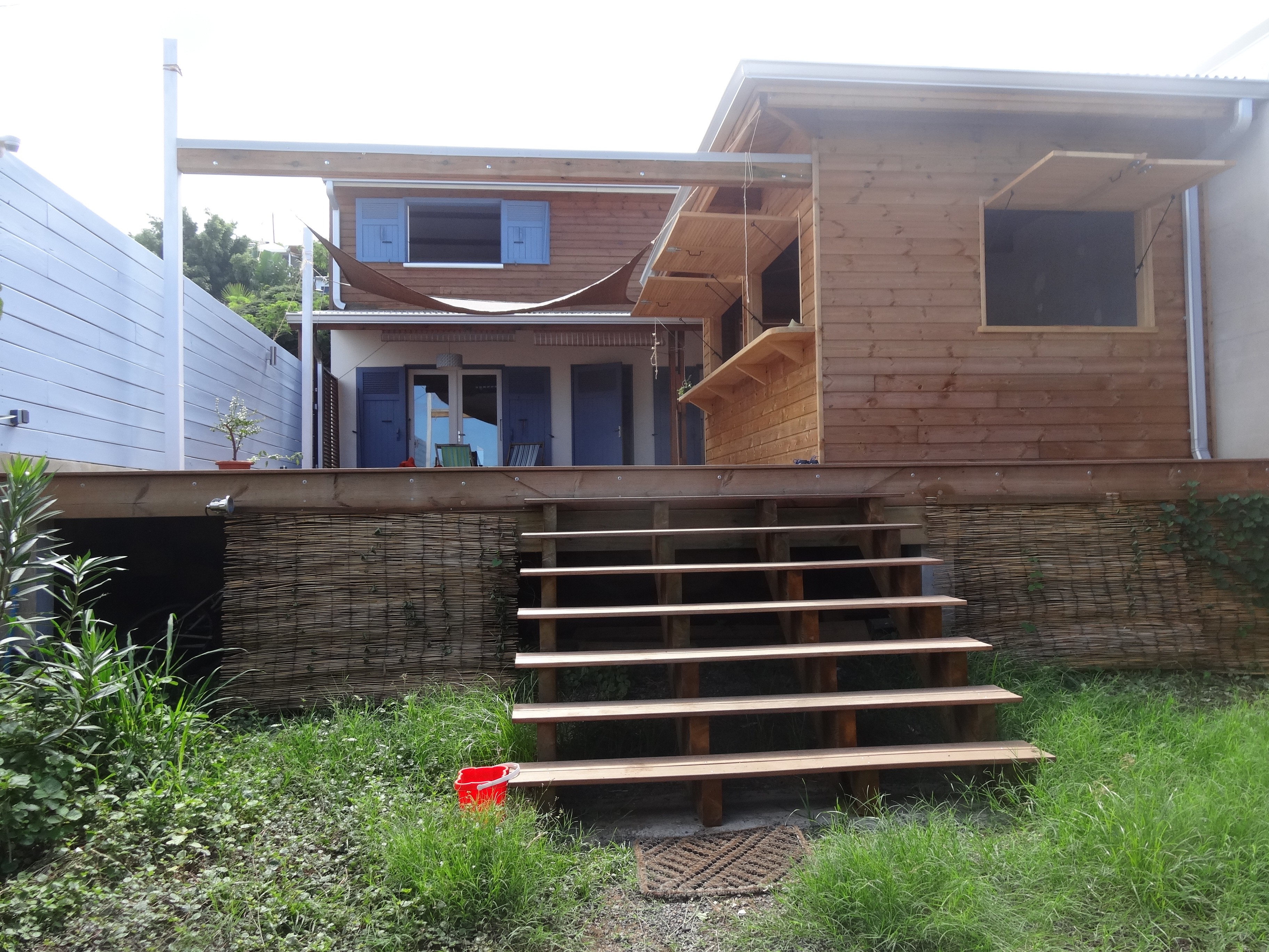 Les 2 extensions sont réalisées en ossature bois et bardage.