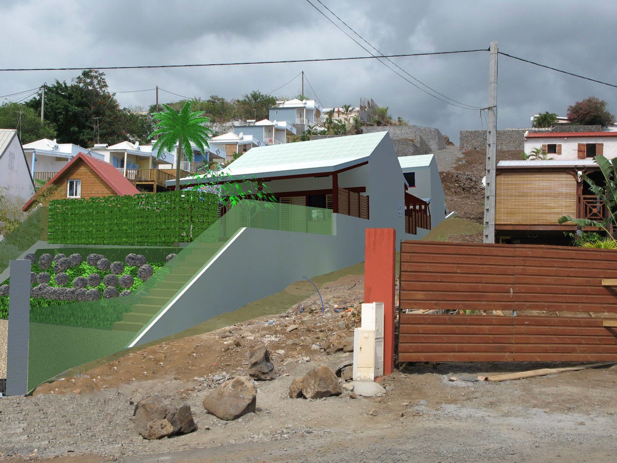 La première est implantée en continuité du module d’origine et recevra la cuisine, tandis que la seconde prend place plus en avant sur le terrain, et recevra un petit studio.