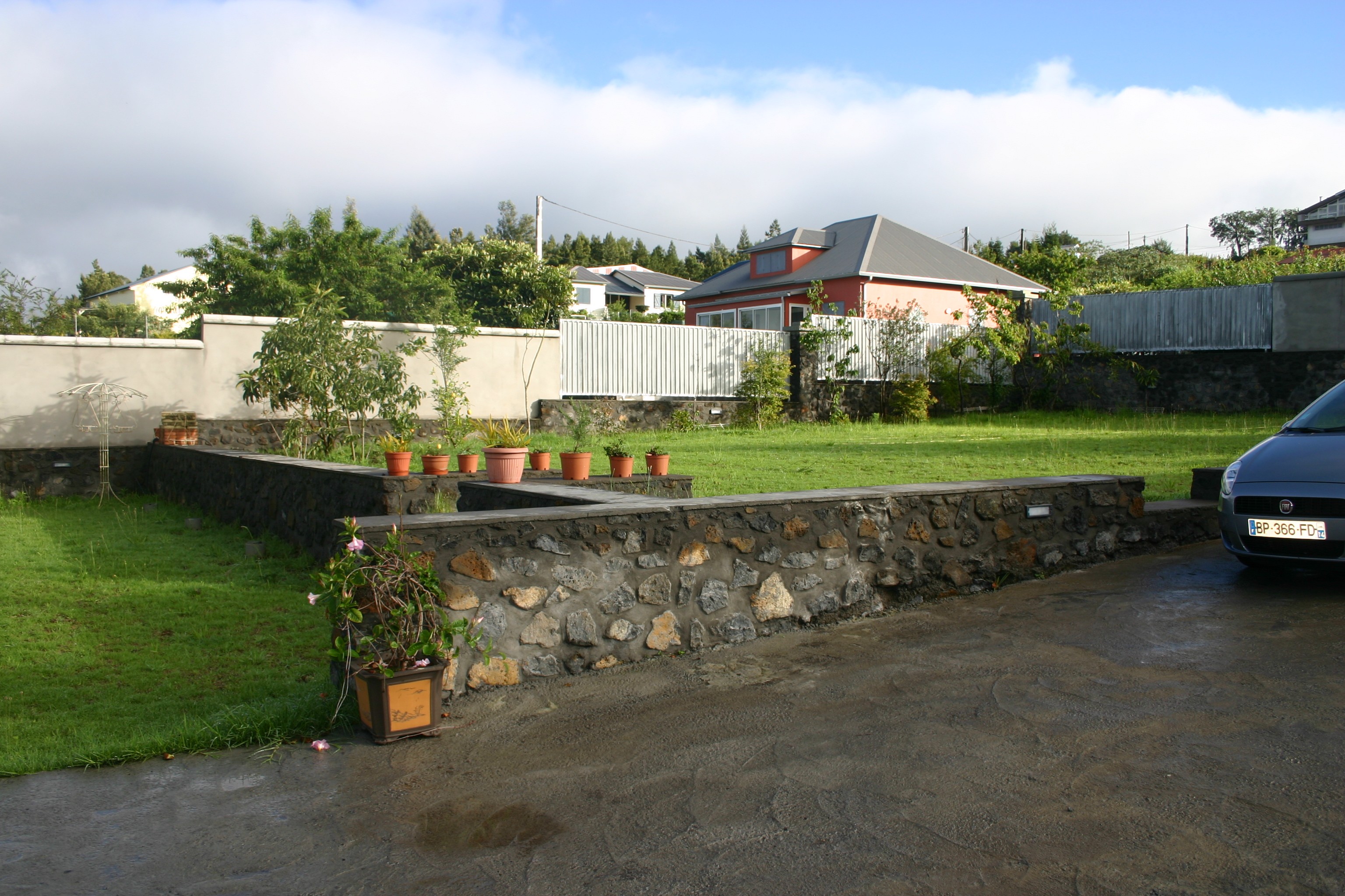 Les relevés des cotes (indicatives) sur place montrent une différence conséquente avec le plan cadastral. Le calcul des surfaces perméables a été effectué en fonction des dimensions relevées sur place. Du fait de la pente régulière du terrain, il a été prévu un soubassement en moellons « en escalier » sous l’ensemble des clôtures. Ensuite, des parties pleines (mur parpaings) ont été judicieusement réparties pour préserver une certaine intimité des propriétaires. Le reste des clôtures est réalisé avec une grille d’environ 140cm de haut et entièrement ajourée, de couleur claire (blanche, grise ou jaune, en rappel avec la villa). Portail et portillon seront de teinte similaire.