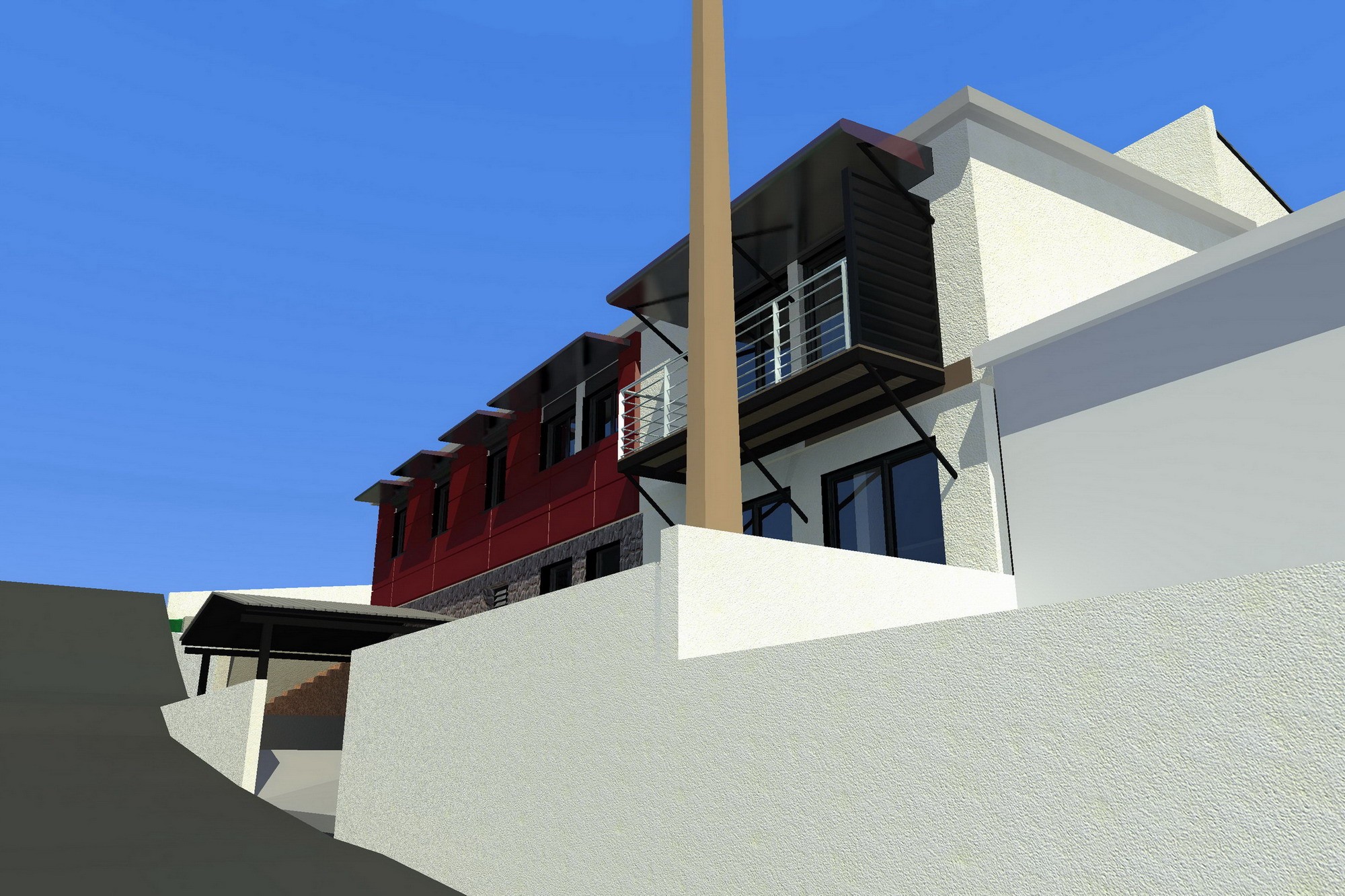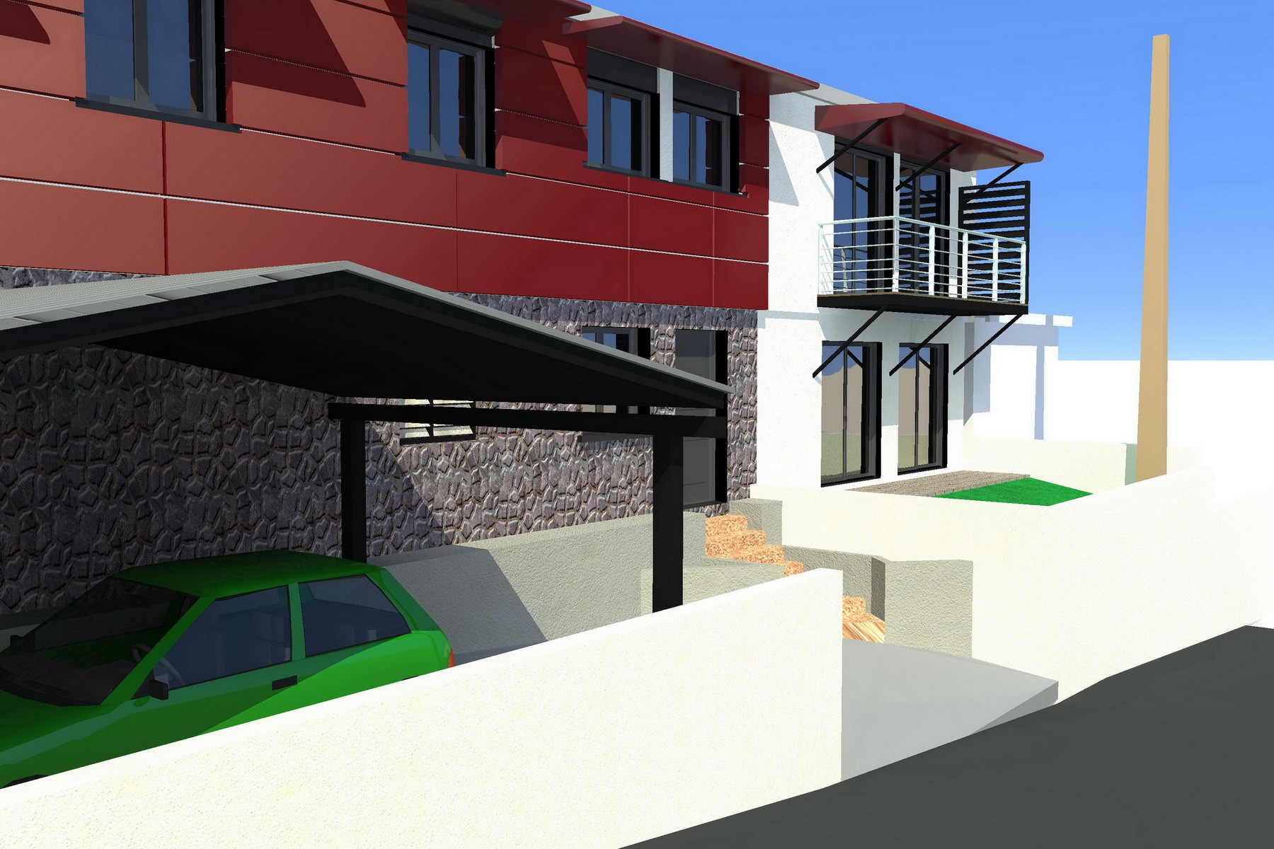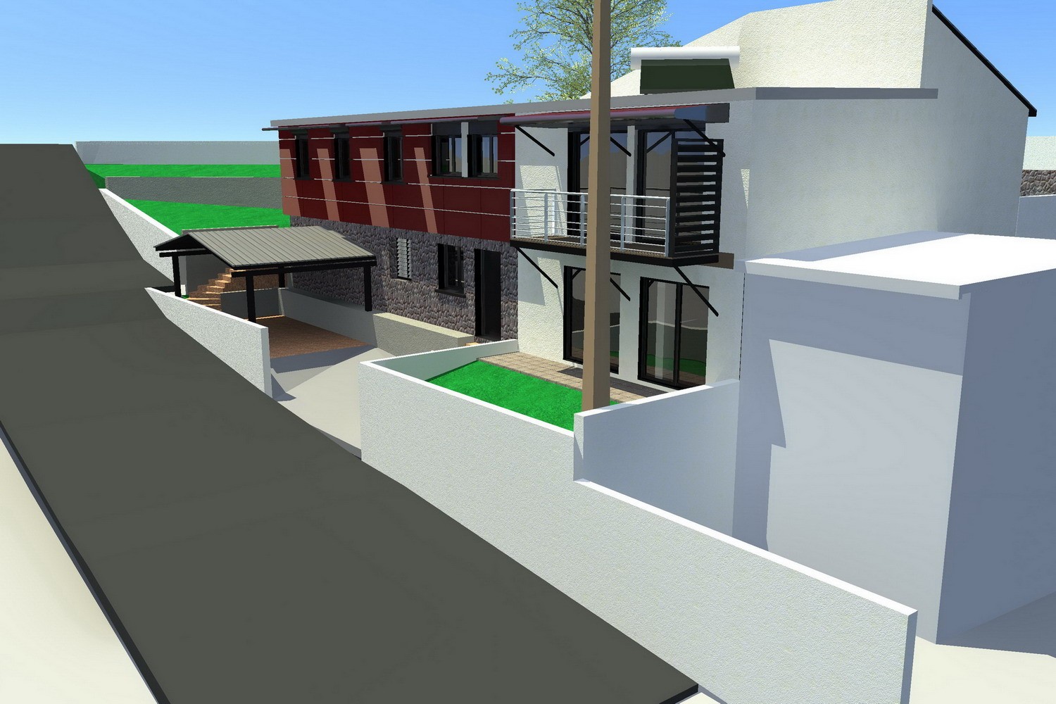 Dans un premier temps, une analyse du site a été réalisée. Le diagramme solaire a été mit en place, la rose des vents a été vérifiée. L’accès au terrain, depuis la rue se fera par l’ouverture du mur de clôture et la mise en place d’un portail. Création d’un abri voiture dans la bande des 4m le long de la voie. Pour cela, il sera réalisé un décaissement de la zone de l’ordre d’1m50. Un mur de soutènement pour la tenue des fondations de la villa existante sera réalisé. L’espace ainsi créé pourra accueillir 2 places de parking.